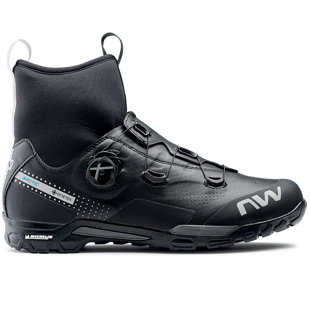 The new winter shoes for every occasion. The Gore-Tex® Koala membrane guarantees excellent breathability with absolute water and wind resistance and ensures maximum comfort on cold days. The Explorer sole stands for excellent power transmission to the pedal and the Michelin sole profile with its 28% abrasion advantage over TPU guarantees outstanding grip on any terrain. The upper shoe with its overlap construction made from the most innovative materials wraps the foot perfectly, avoids pressure points and transfers every watt of power to the drivetrain without loss. Additional TPU reinforcements offer maximum protection in the front area.